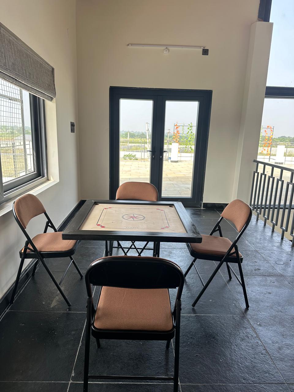 A large 15,000 sq. ft lawn is available for outdoor activities and leisure. Children can enjoy a dedicated play area featuring outdoor games to keep them engaged and entertained.