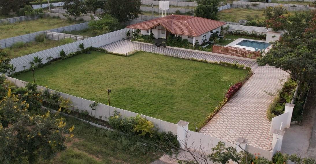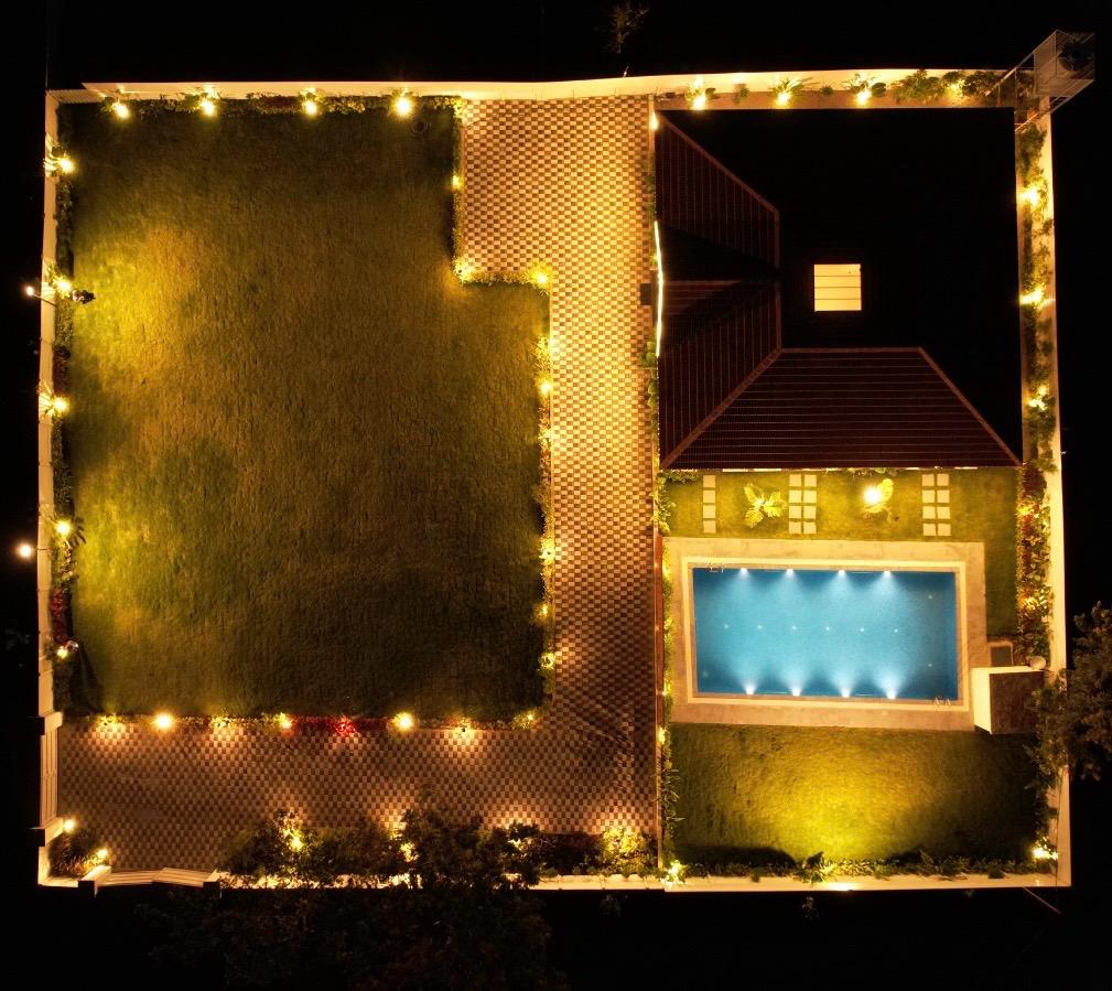 A generous 10,000 sq. ft lawn is available for outdoor activities, games, and relaxation.