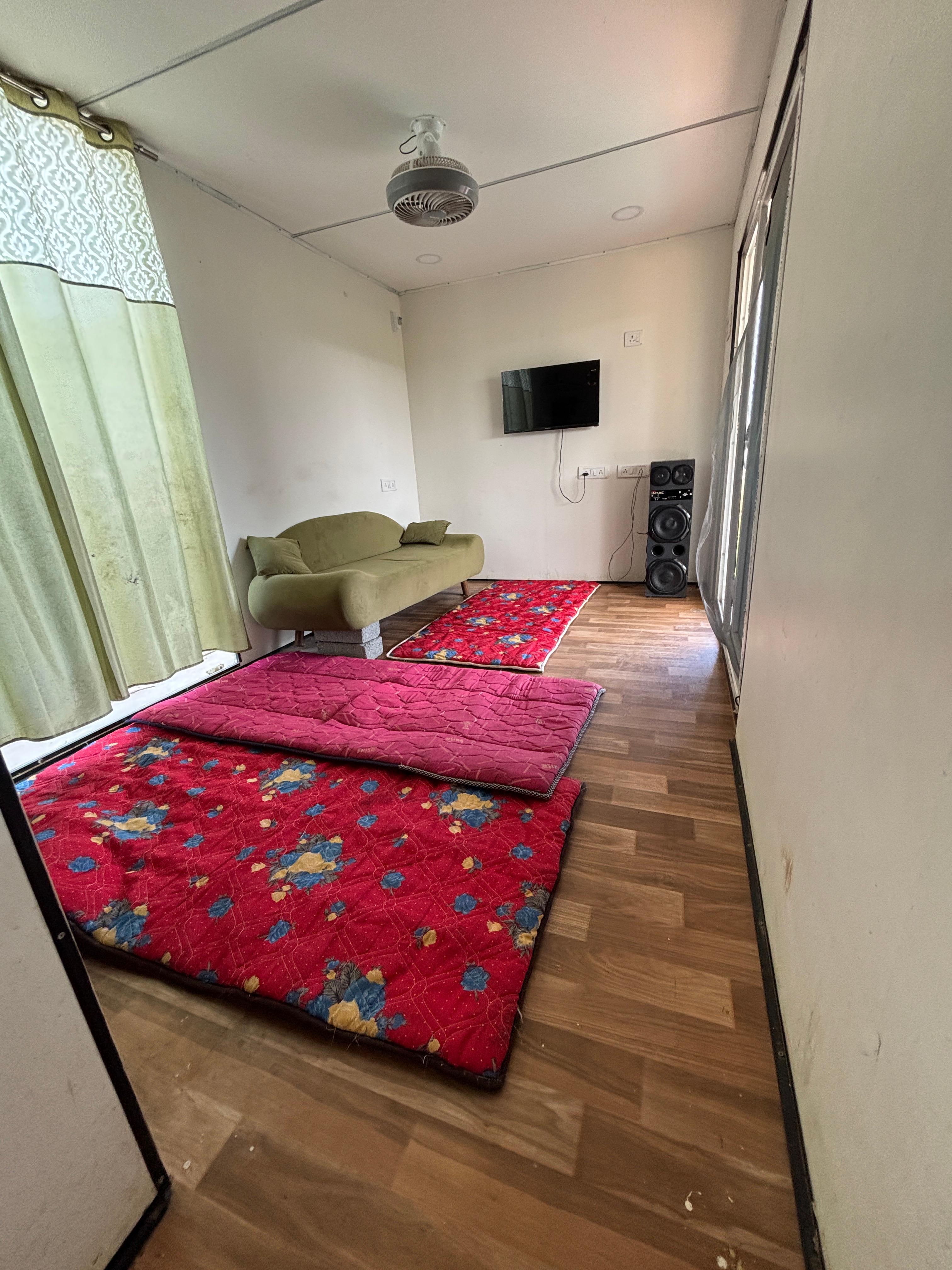 Enjoy a cozy and comfortable stay at our farmhouse spread across 230 sq. yards, perfect for small gatherings and peaceful retreats. The property can comfortably accommodate 10–12 guests, making it ideal for families and small groups.