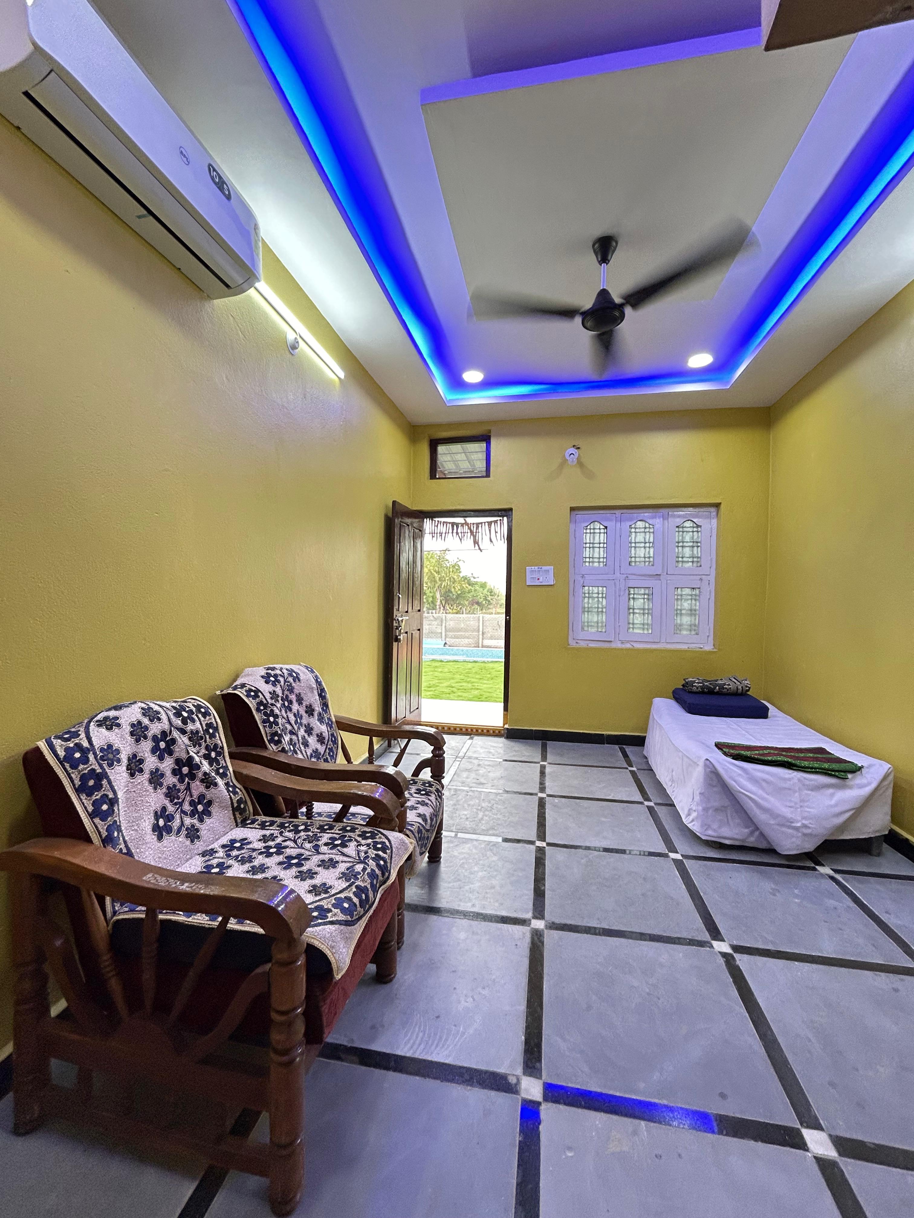 Welcome to our spacious and activity-filled farmhouse spread across 10,500 sq. ft, offering the ideal setting for group stays, celebrations, and fun-filled gatherings. The property can comfortably accommodate up to 250 guests, making it perfect for large family outings and social events.